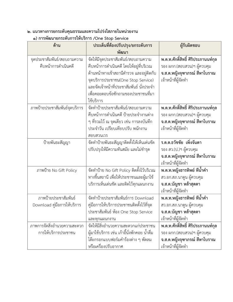 1.การพัฒนายกระดับการให้บริการ One Stop Service เพื่ออำนวยความสะดวกให้กับผู้มารับบริการ